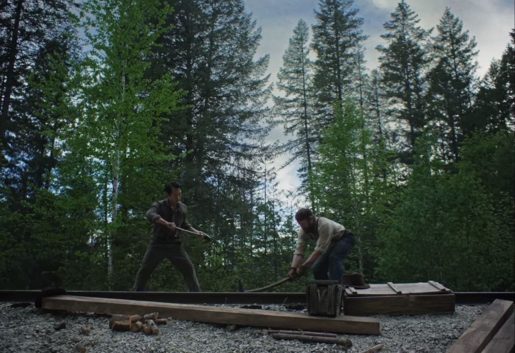 That story is the acknowledgment of the silent erasure of the Chinese immigrant contribution to American history. This storyline is not shoved in our faces, but we witness it through the protagonist Robert Grainier as something that existed in that point of history. The involvement of Grainier even briefly lifting the Chinese laborer, Fu Sheng 福生 (played by Alfred Hsing), to assist the mob for just a second and then further doing nothing to stand up against them as Fu Sheng is murdered sits with Grainier for the rest of his life. As much as it would be ideal to say this is purely an acknowledgement of the past, this story set in the early 1900s parallels stories happening with immigrants in America today– the silent erasure of immigrant contributions, the unjust scapegoating toward immigrant communities, and sometimes violent acts committed against them.